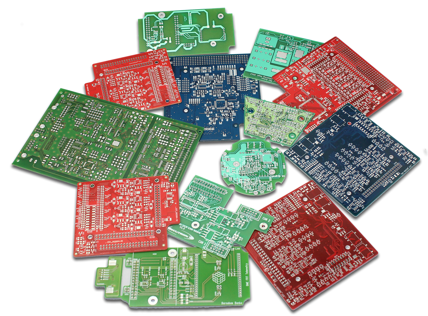 We can produce boards with 1-16 layers, coated with red, green or blue solder resist. The silkscreen can have a color of white or yellow and the board can be gold plated selectively or fully as well. For easy assembly we can ship the finished products milled to individual pieces or panelized.